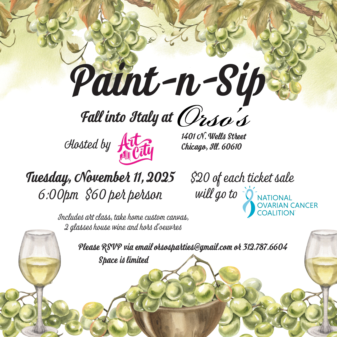 312-787-6604 or orsosparties@gmail.com