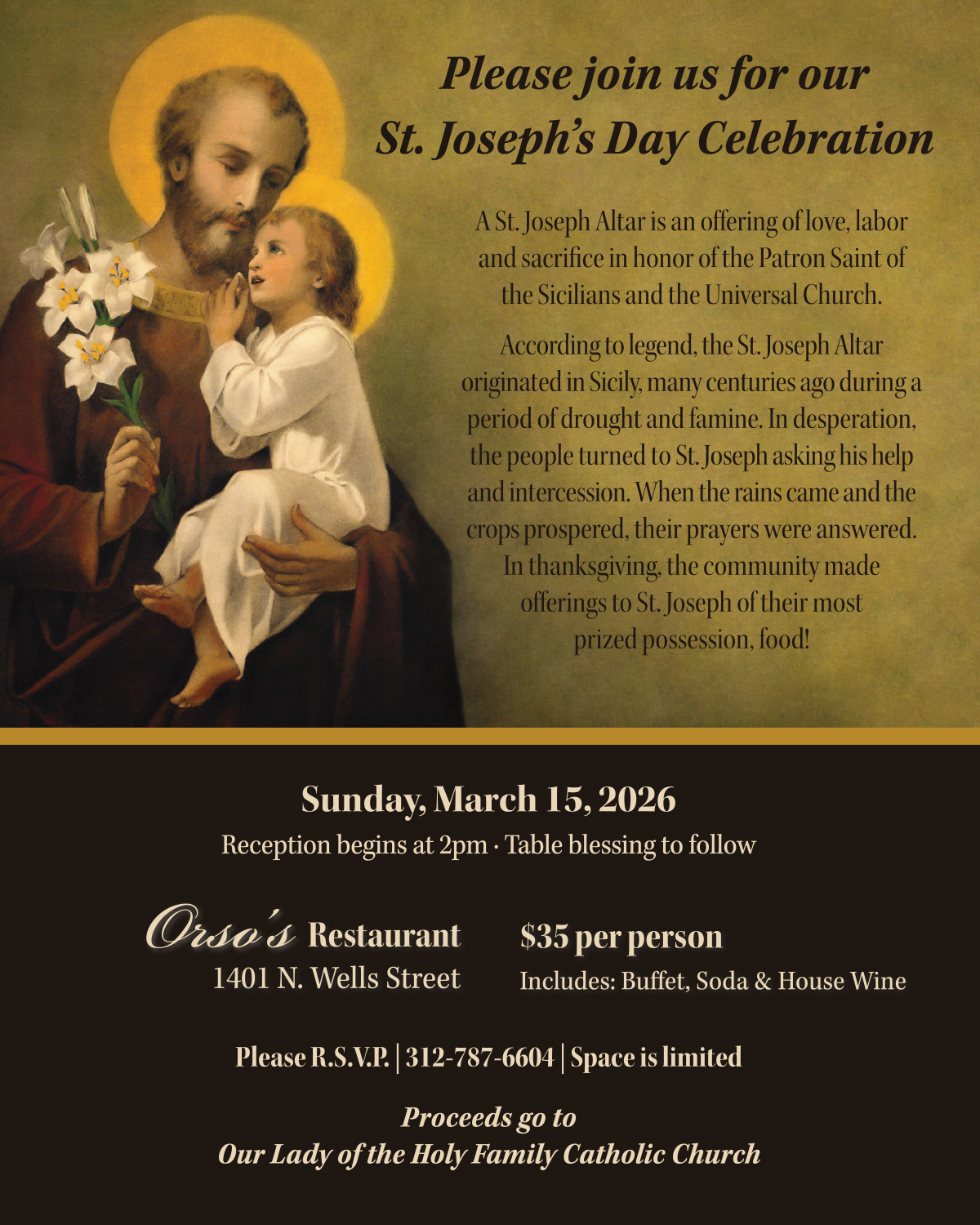 Proceeds go to Our Lady of the Holy Family Catholic Church Space is limited | Please R.S.V.P. | 312-787-6604
